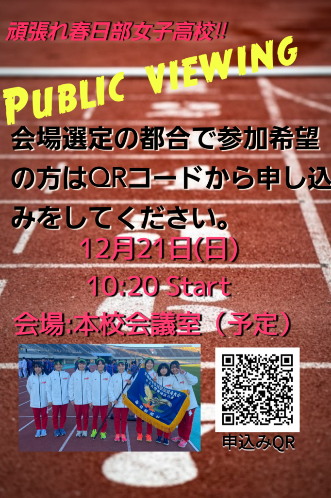 春女陸上部が出場する『全国高校駅伝大会』のパブリックビューイングを、本校にて開催します。